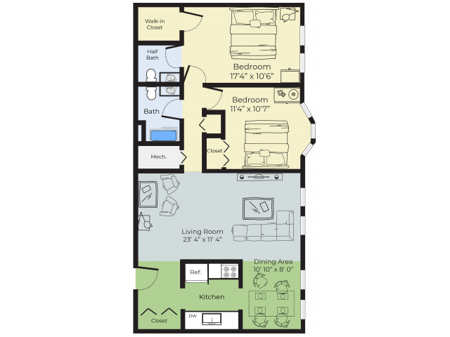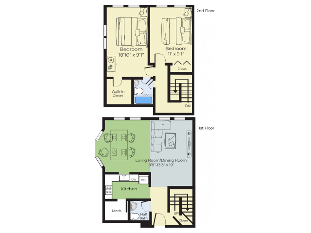 2 Beds, 1.5 Baths, 975-1200 sq ftLargest 2 BedroomThis is the largest 2 Bedroom at this PropertyModel Gallery