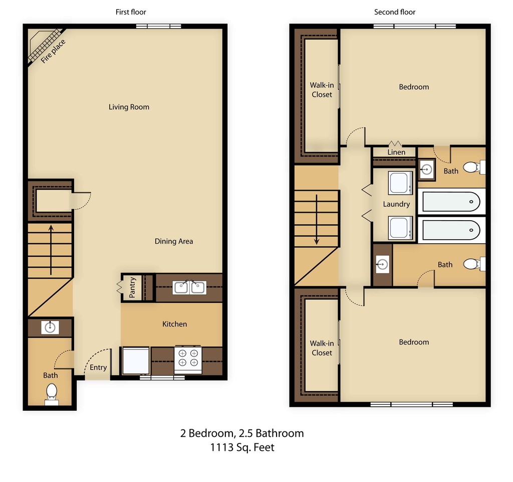 2 Beds, 2.5 Baths, 1113 sq ftAvailable NowModel Gallery