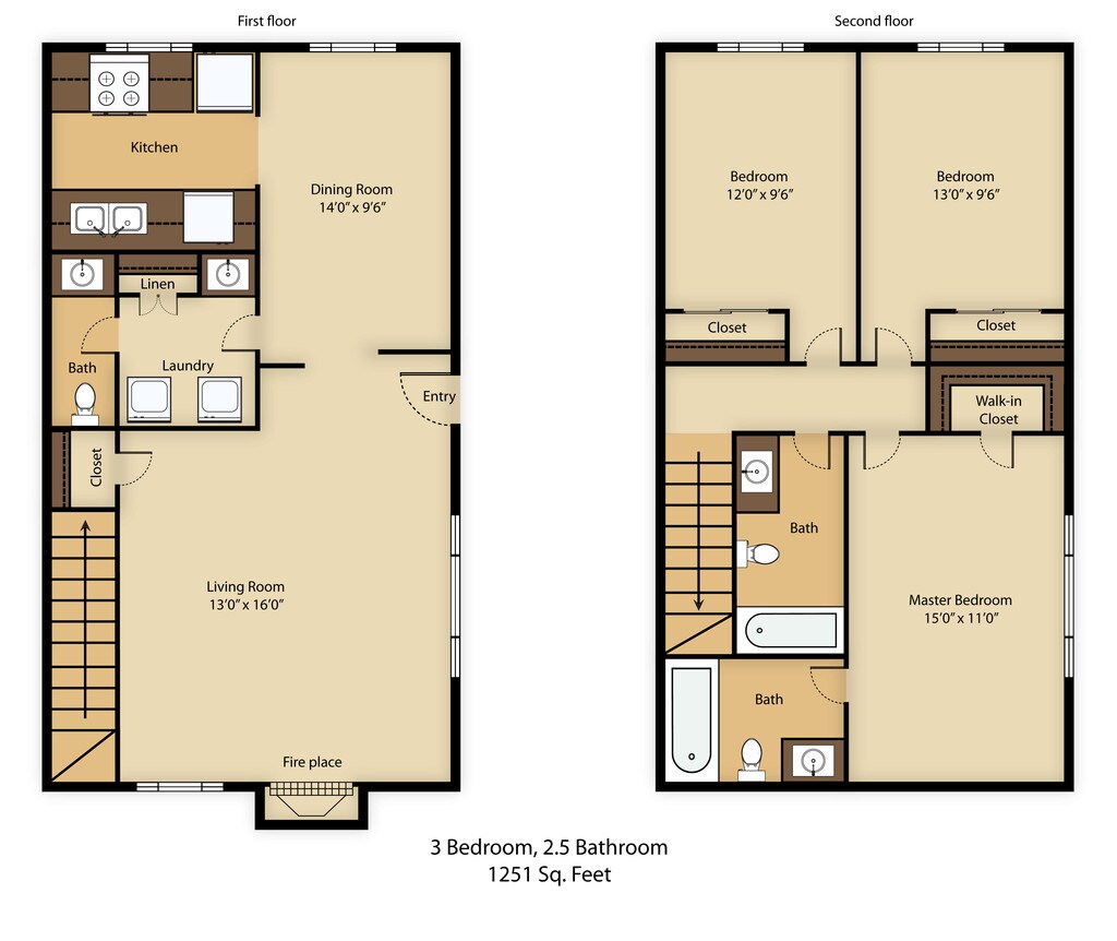 3 Beds, 2.5 Baths, 1251 sq ftAvailable NowModel Gallery