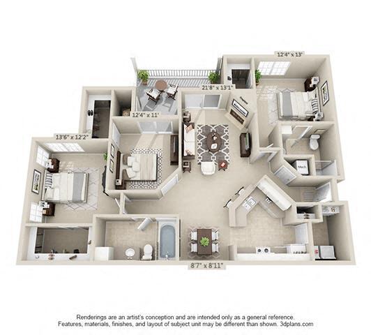2 Bed 2.5 Bath - Floorplan 1 Apartment Unit: 12421Apartment Model: 2 Bed 2.5 BathCall For Rates2 Bedroom, 2.5 Bath, 1257 sq ftAvailable January 24, 20263 Bedrooms