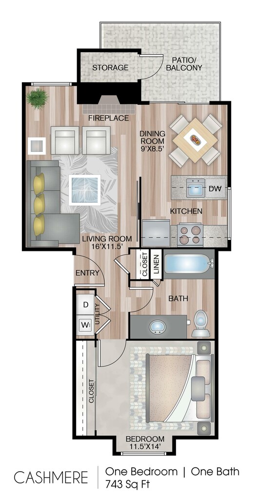 Cashmere - Floorplan 1 Apartment Unit: 02-B305Apartment Model: CashmereFrom $1,6601 Bedroom, 1 Bath, 743 sq ftAvailable November 14, 2025Grays Harbor