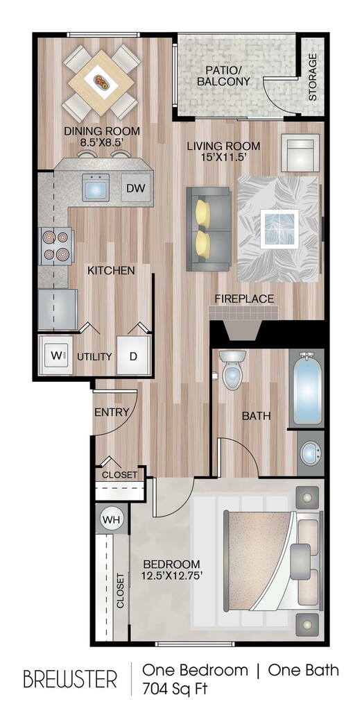 Brewster - Floorplan 1 Apartment Unit: 01-D03Apartment Model: BrewsterFrom $1,6051 Bedroom, 1 Bath, 704 sq ftAvailable NowPaulson