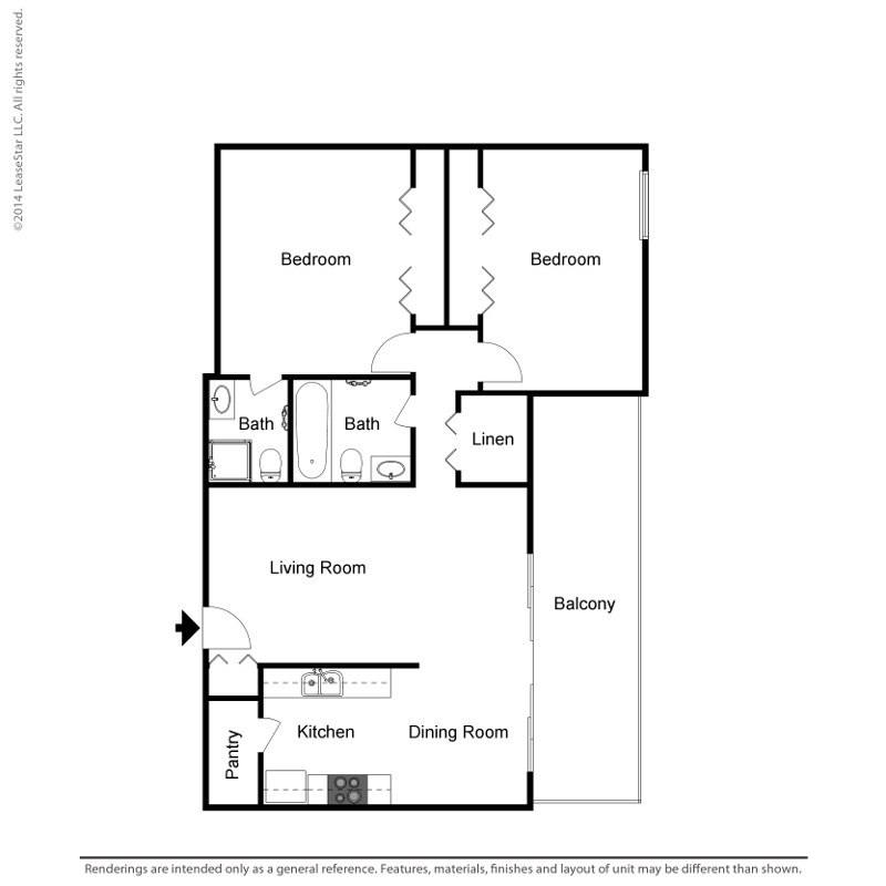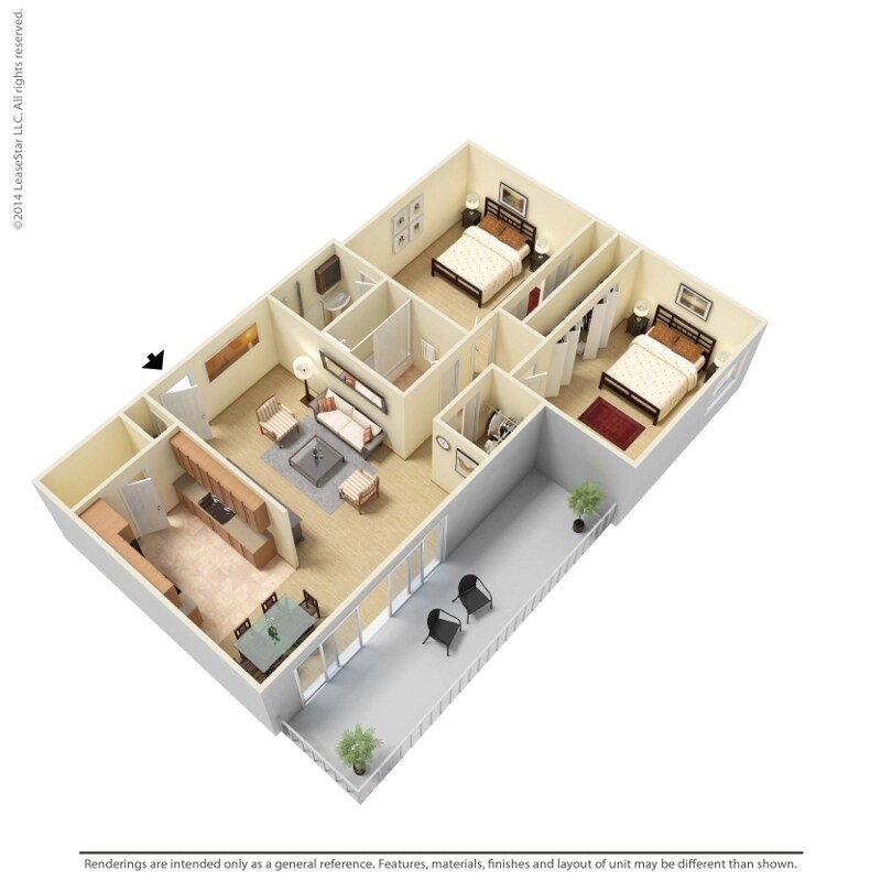 2 Beds, 2 Baths, 1125 sq ftLargest 2 BedroomThis is the largest 2 Bedroom at this PropertyModel Gallery