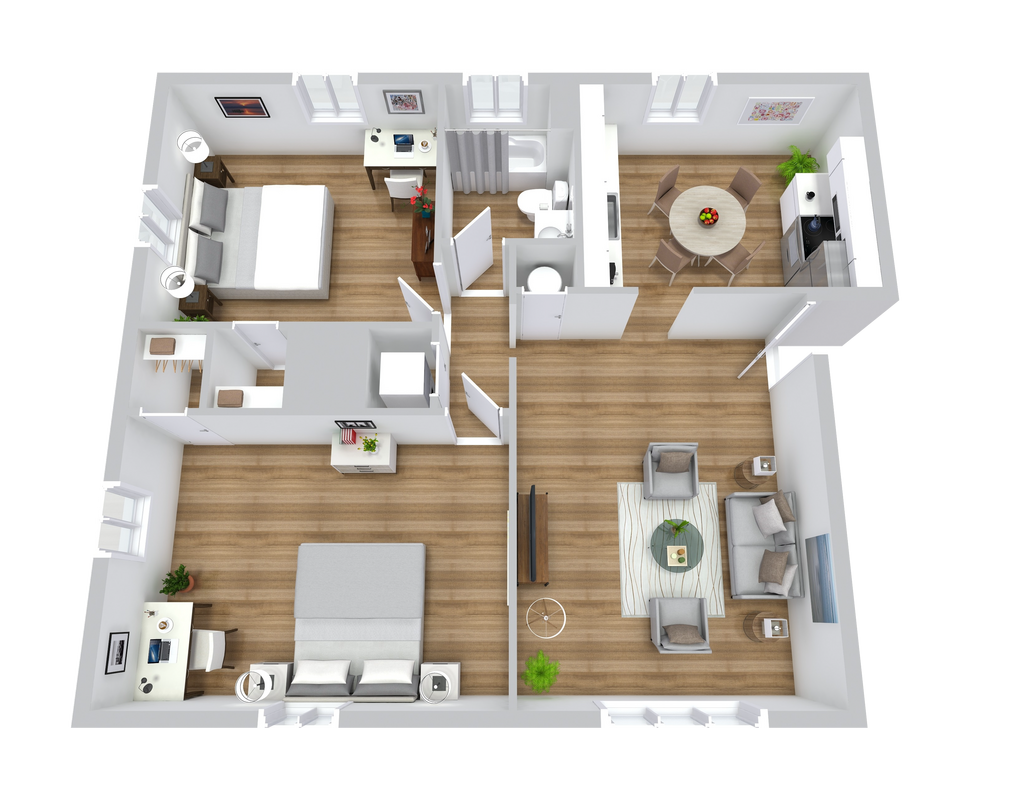 1 Bedroom, 1 Bathroom - Floorplan 4 2 Bedrooms