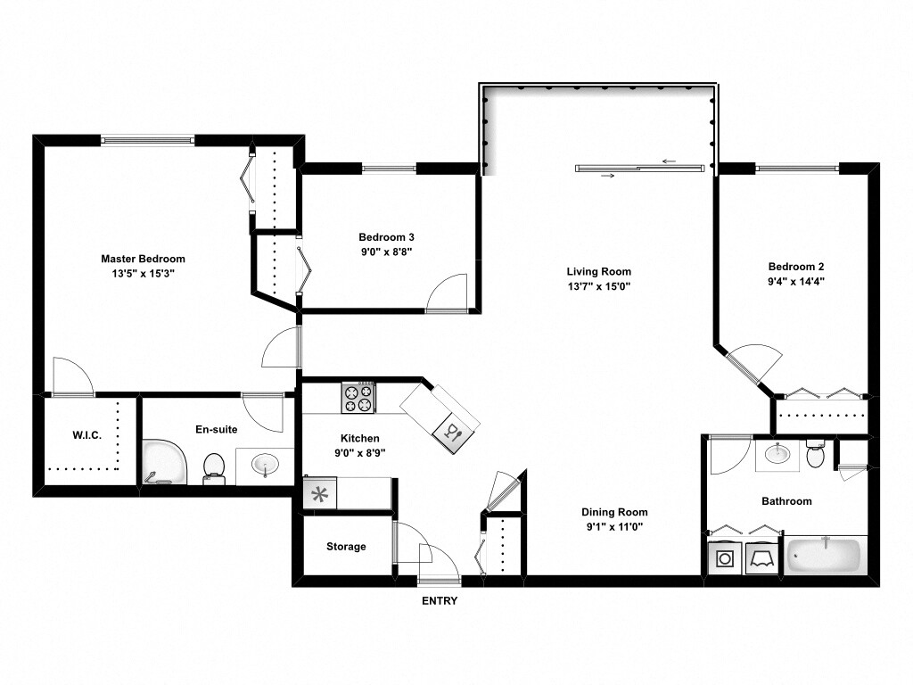 3 Beds, 2 Baths, 1240 sq ftLargest 3 BedroomThis is the largest 3 Bedroom at this PropertyModel Gallery