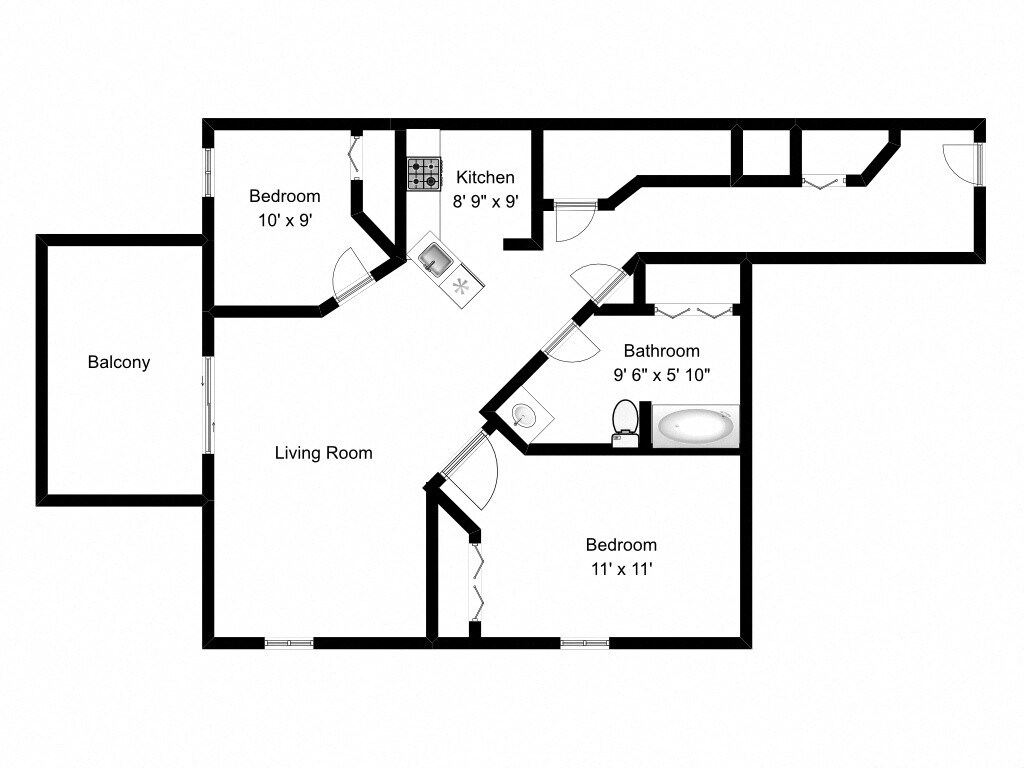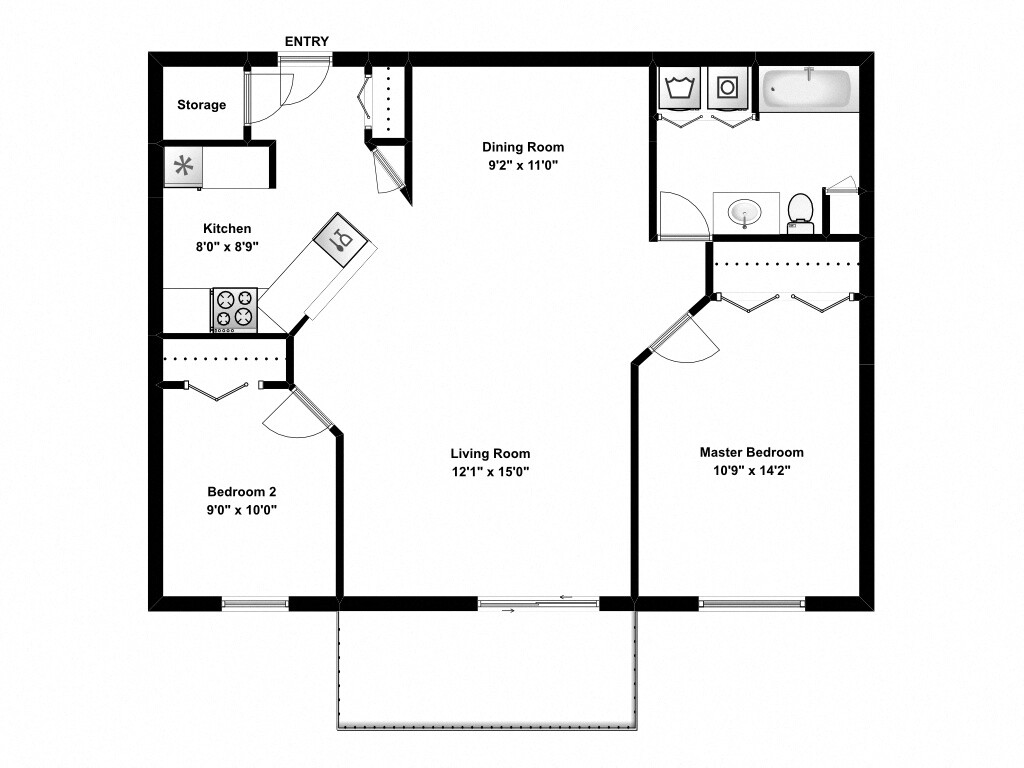 2 Beds, 1 Bath, 1057 sq ftAvailable Dec 1Largest 2 BedroomThis is the largest 2 Bedroom at this PropertyModel Gallery