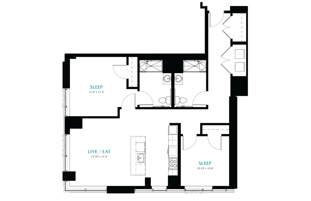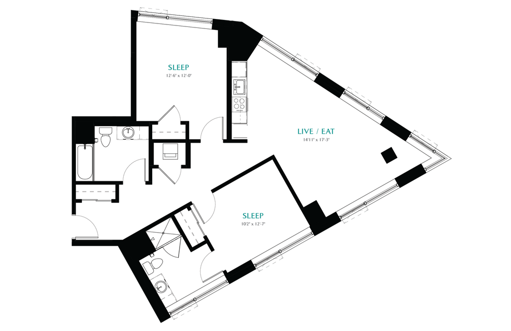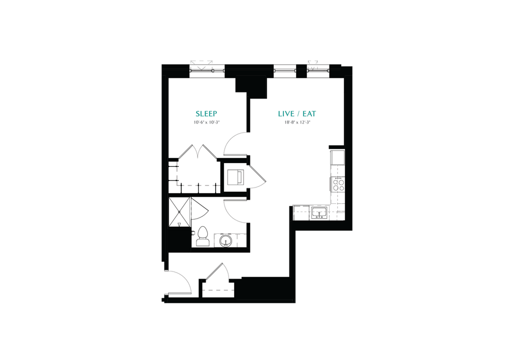 E2 - Floorplan 2 Apartment Unit: B2-504Apartment Model: E2$3,899Studio, 1 Bath, 427 sq ftAvailable NowFloorplan E6