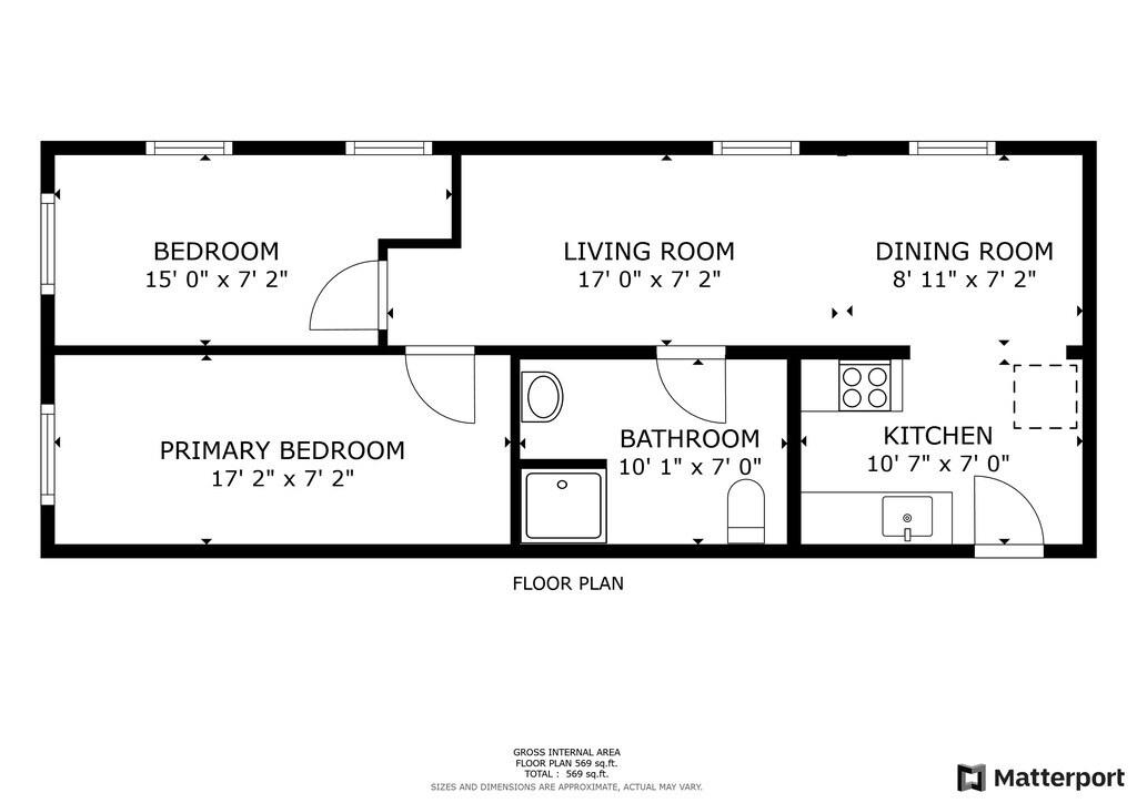 1x1 - Floorplan 7 Apartment Unit: 514Apartment Model: 1x1$8651 Bedroom, 1 Bath, 569 sq ftAvailable Now2 Bedrooms