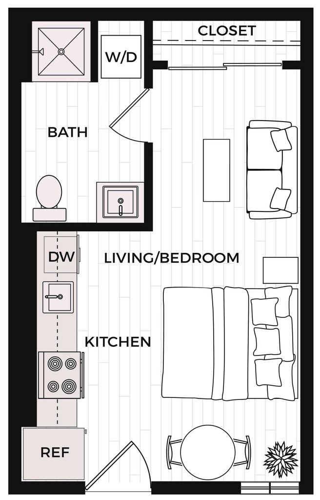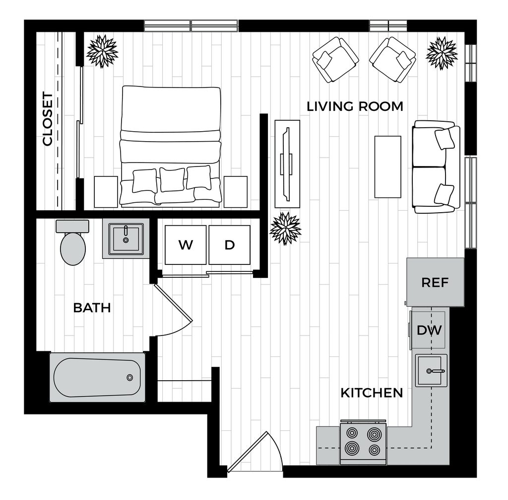 Apartment Model: Studio B$1,199Studio, 1 Bath, 383 sq ftAvailable Now![]()