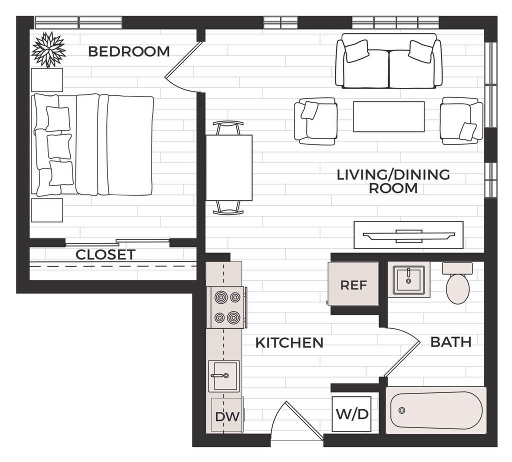 1 Bed, 1 Bath, 578 sq ftAvailable Nov 20Model Gallery