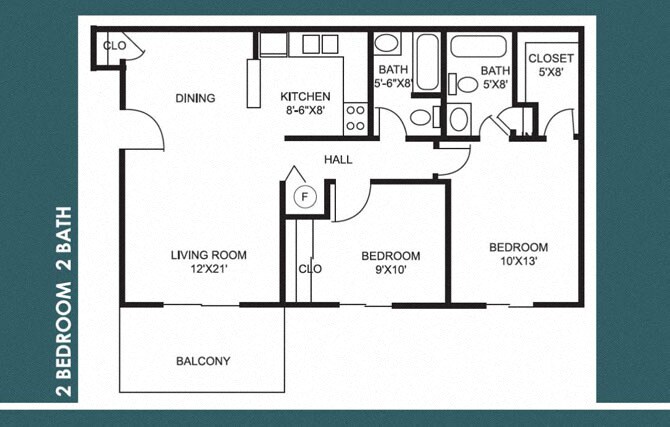 Apartment Model: 2BR 1BA2 Bedroom, 1 Bath, 800 sq ftAvailable Now![]()