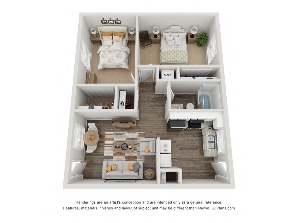 - 2 Bedrooms- Floorplan B2- From $1,3012 Beds, 2 Baths, 980 sq ftAvailable Now- Model Gallery- Floorplans- Availability Details- Price - Availability Date - Unit - Sq Ft - $1,312 - Available Now - B-6 - 980 - $1,453 - Available Now - A-4 - 980 - $1,301 - Available Now - C-11 - 980 - Model Amenities and Features- Features- Air Conditioning