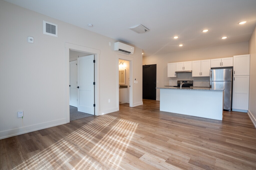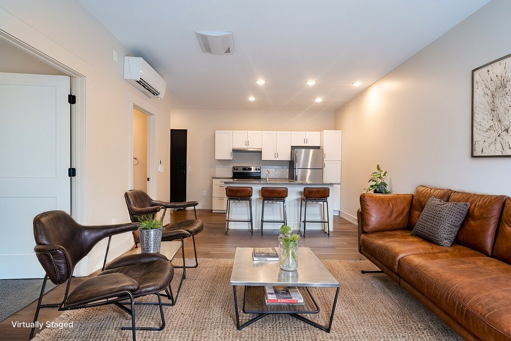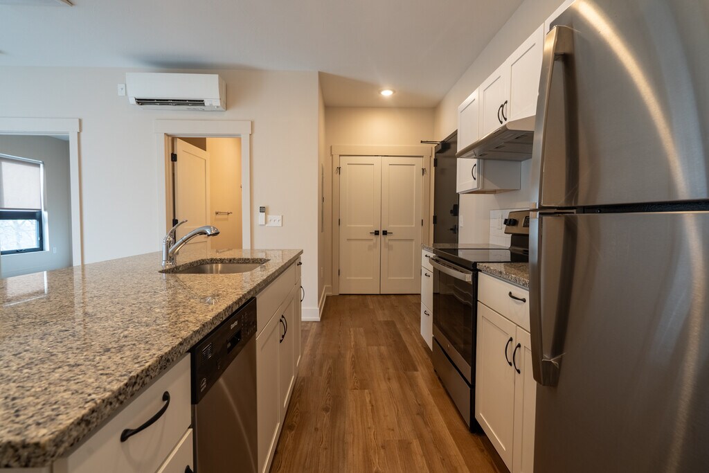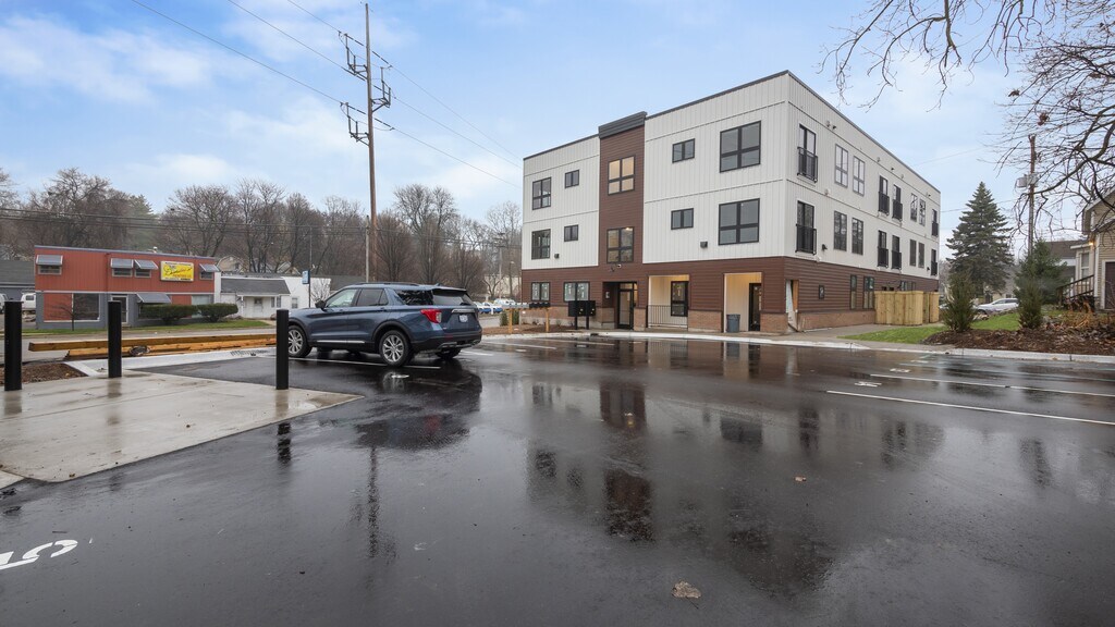 Live carbon neutral in this LEED certified building. Built in 2020, the apartments at Bradford Station were constructed for maximum efficiency and lowest footprint possible. Live within walking distance of the Medical Mile, GRCC, and several parks with all the modern amenities of a newly constructed building--air conditioning, fiber optic internet, stainless steel appliances, in-unit laundry, bike storage, and more. Heating and cooling systems do not share air with other apartments. On-site parking spaces are available for $50 per month. Cats and small dogs are allowed with additional fees. Live sustainably without sacrificing modern conveniences at Bradford Station Apartments.