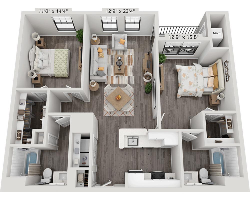 Apartment Model: One Bedroom A1A2From $2,5091 Bedroom, 1 Bath, 858 sq ftAvailable Now![]()