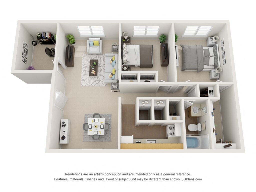 2 Bed 1 Bath + Den - Floorplan 1 3 Bedrooms