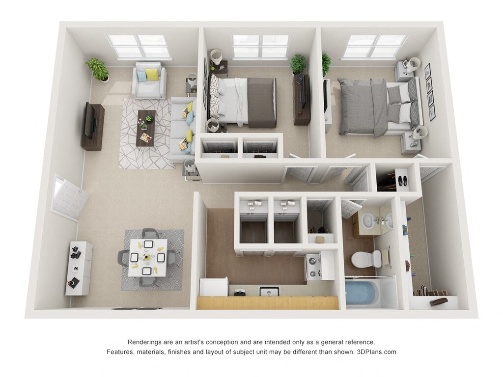 Apartment Model: 2 Bed 1 Bath$1,1502 Bedroom, 1 Bath, 868 sq ftUnavailable![]()