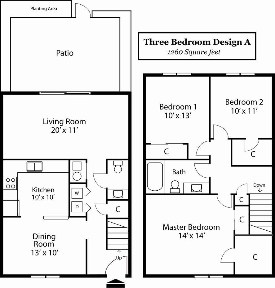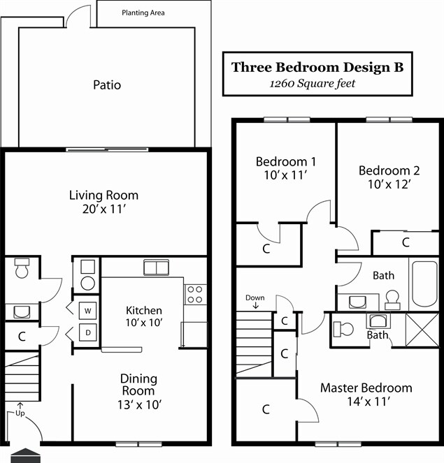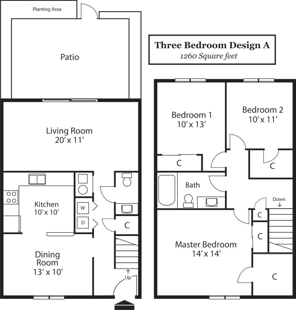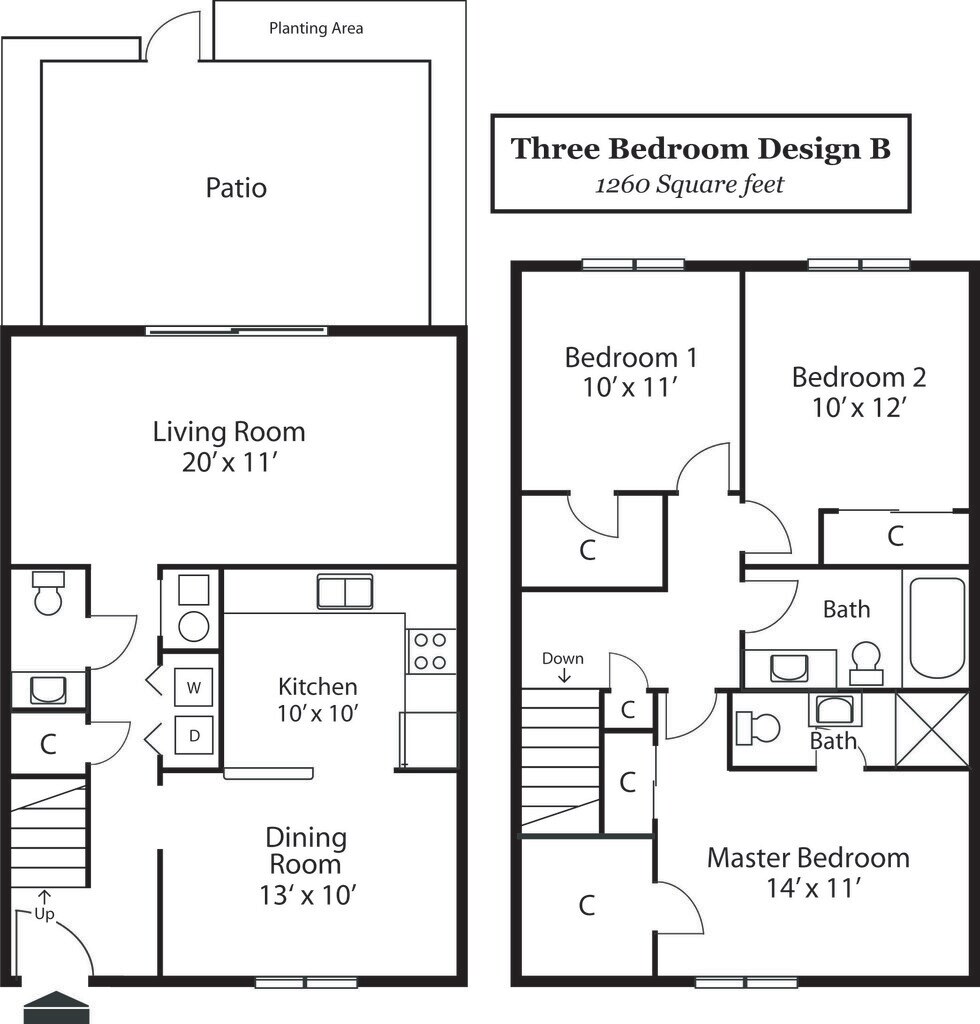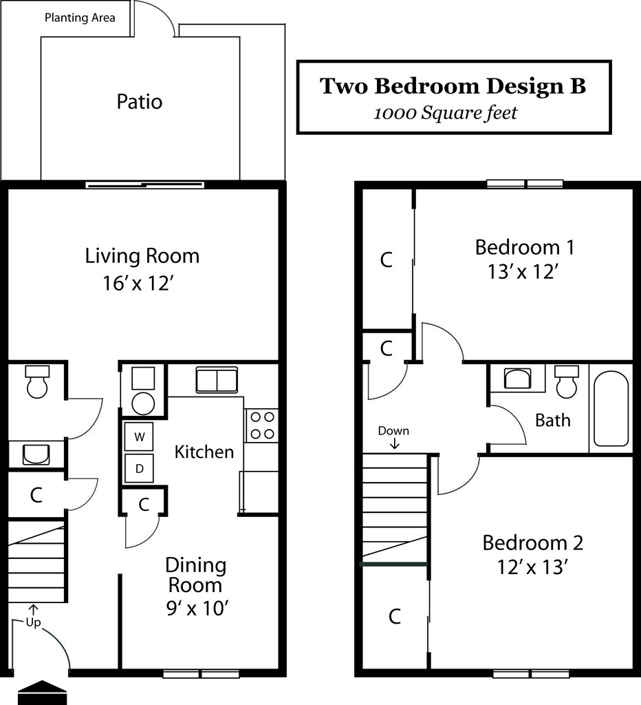 Apartment Model: 2X1.52 Bedroom, 1.5 Bath, 1000 sq ftAvailable Now![]()