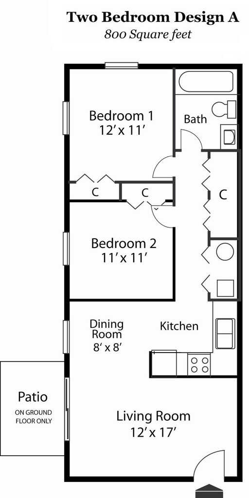 2 Beds, 1 Bath, 800 sq ftAvailability Details