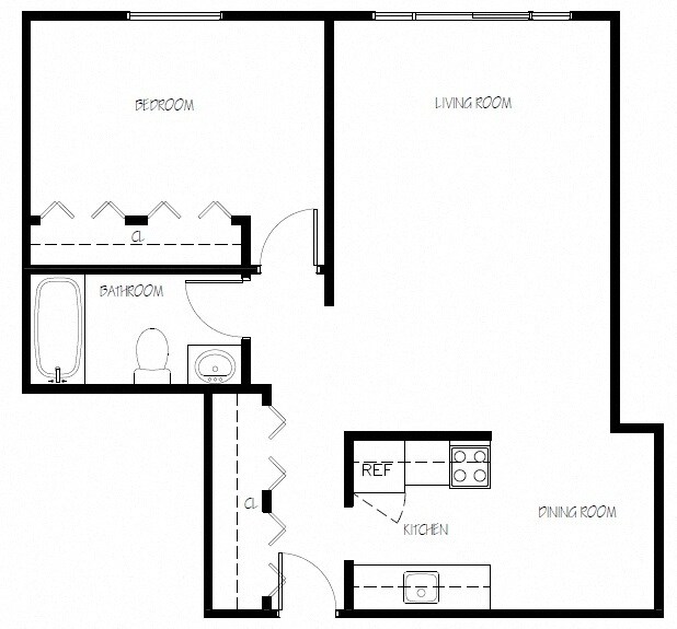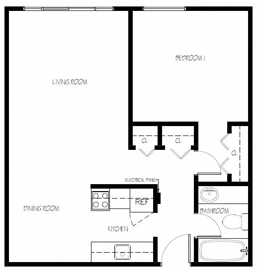 2 Bed 1 Bath C - Floorplan 1 2 Bed 1 Bath A