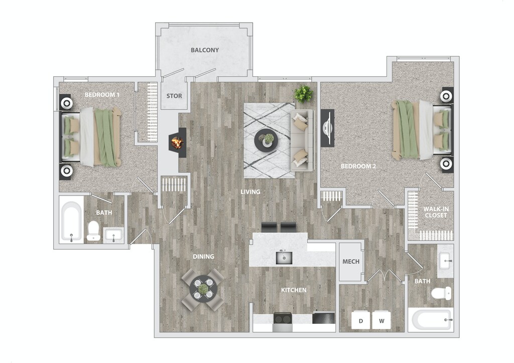 2 Beds, 2 Baths, 975 sq ftAvailable NowModel Gallery