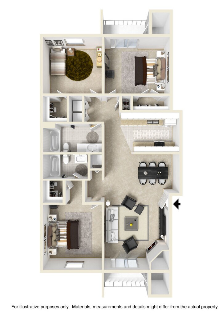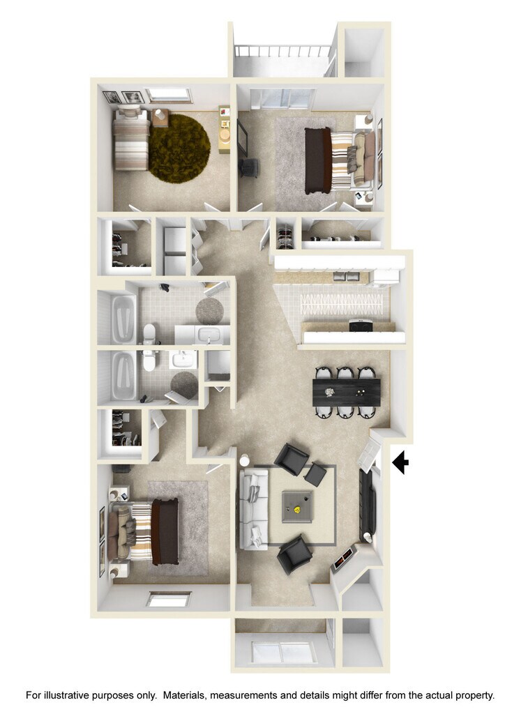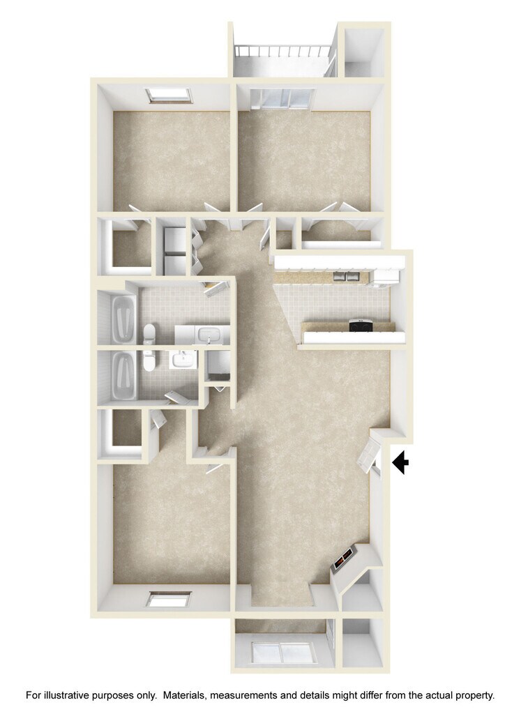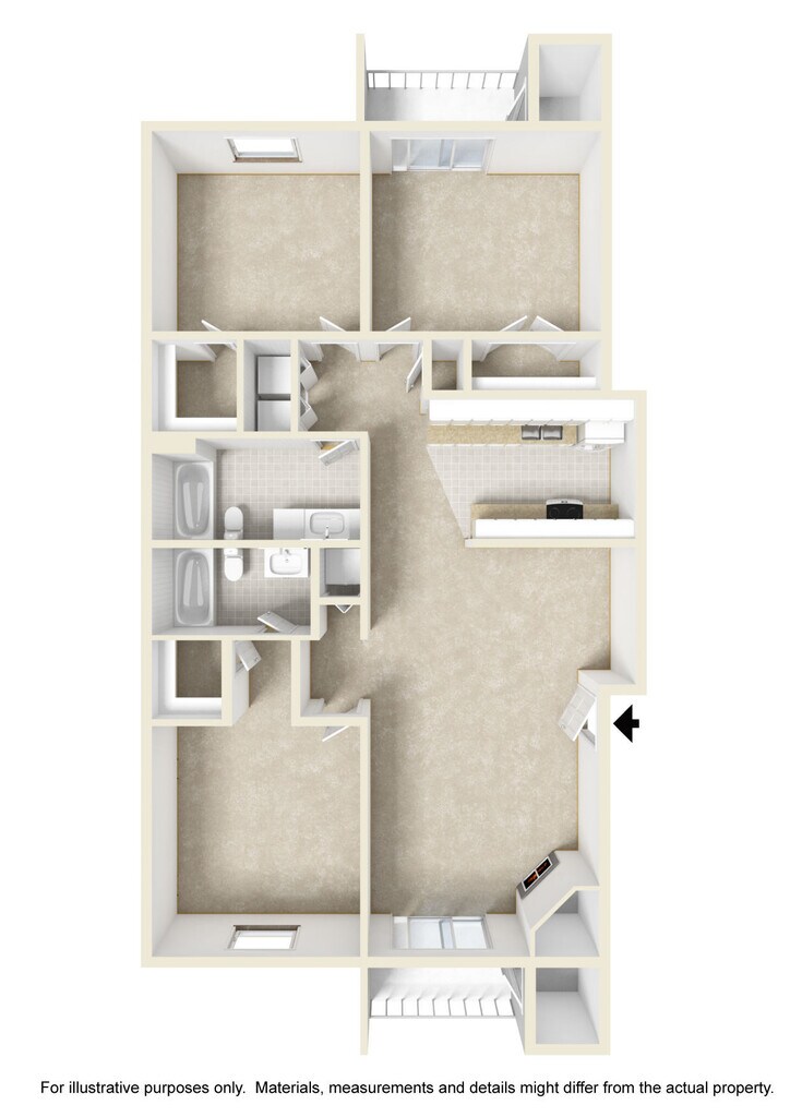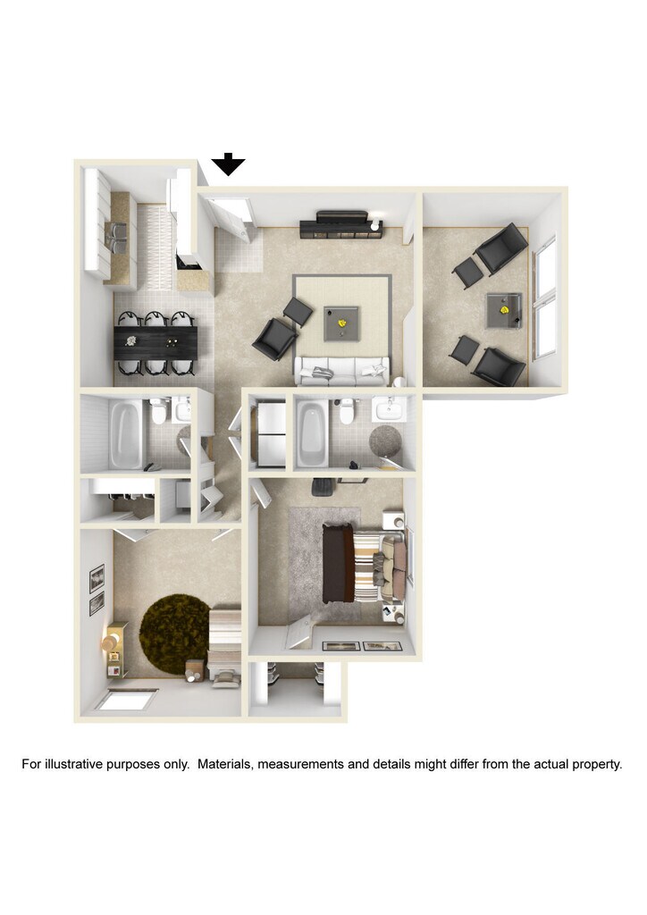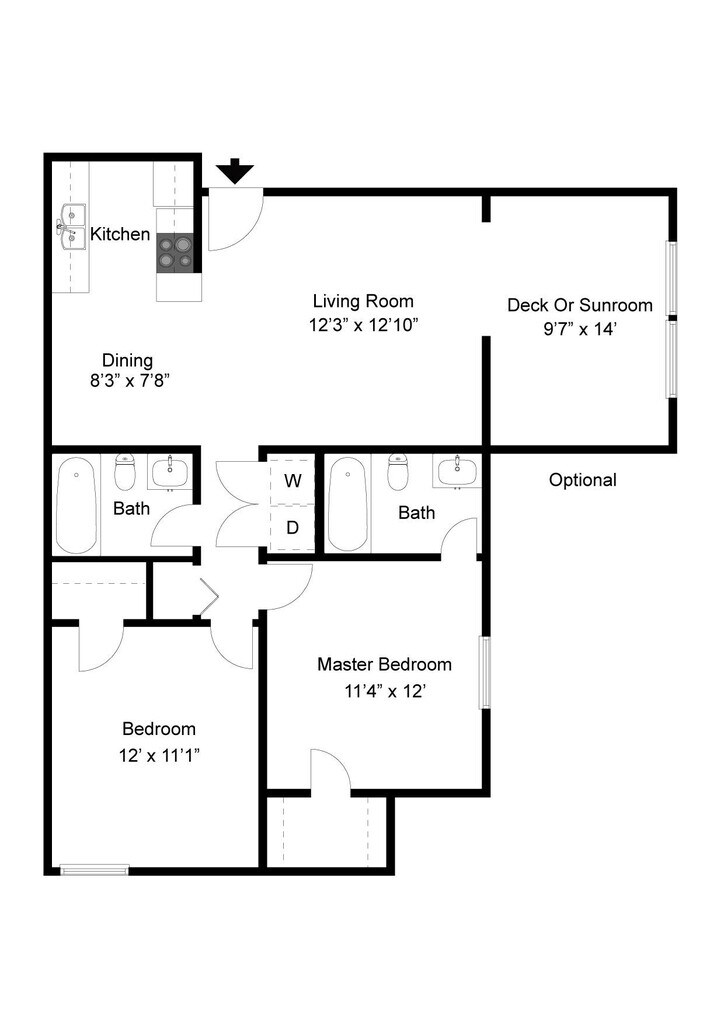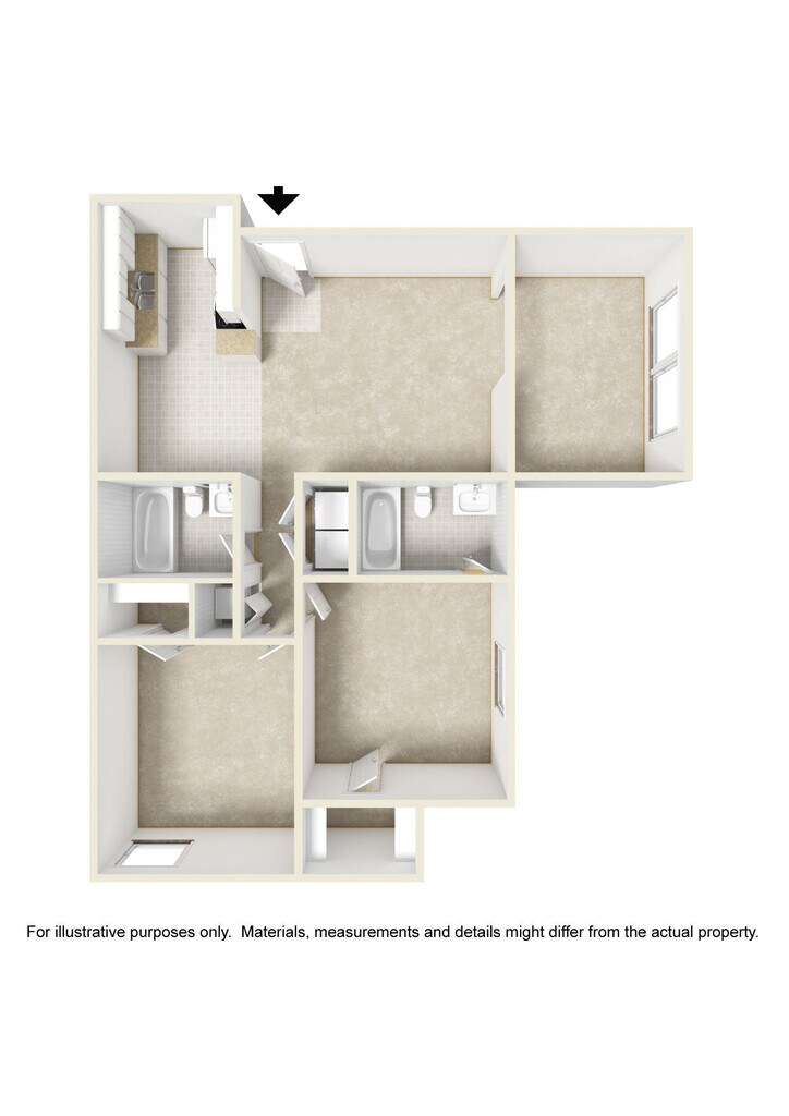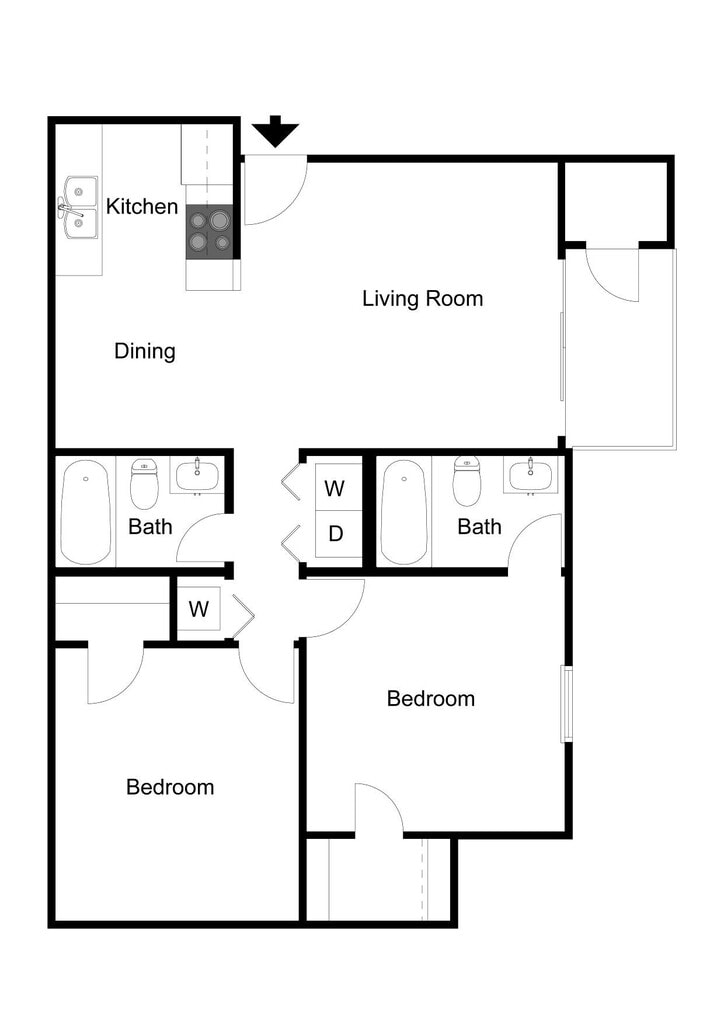 2 bdrm/2 bath B - Floorplan 3 3 Bedrooms