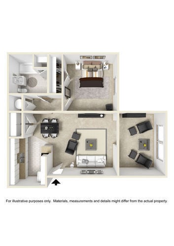 Apartment Model: 1 bdrm/1 bath AFrom $9701 Bedroom, 1 Bath, 684 sq ftAvailable Now![]()