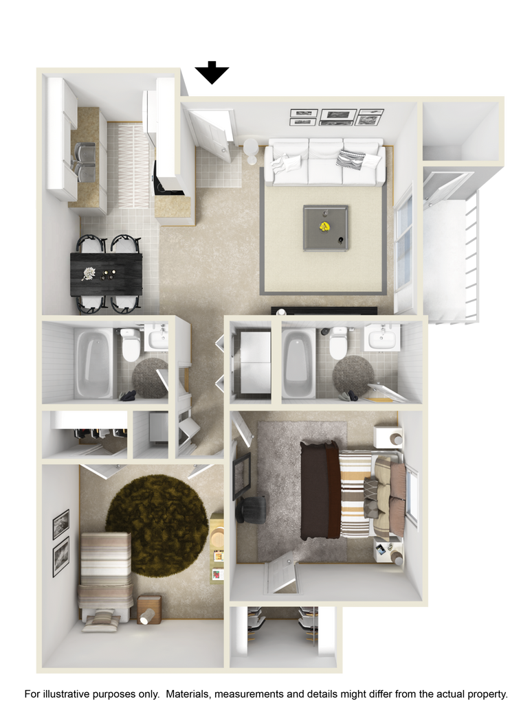 2 Beds, 2 Baths, 1004 sq ftModel Gallery