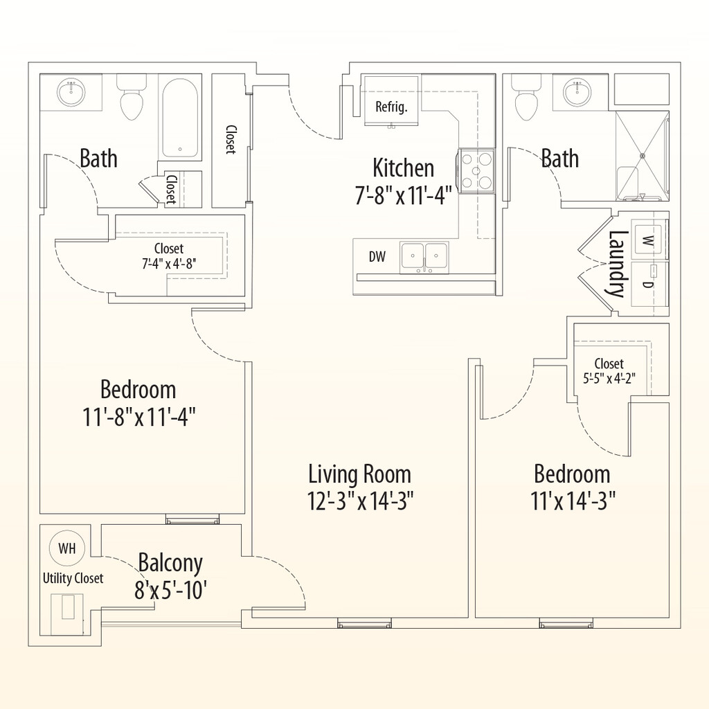 F-bc - Floorplan 1 Apartment Unit: 114BCApartment Model: 2 Beds, 2 baths$1,7922 Bedroom, 2 Bath, 998 sq ftAvailable January 10, 2026E-bc