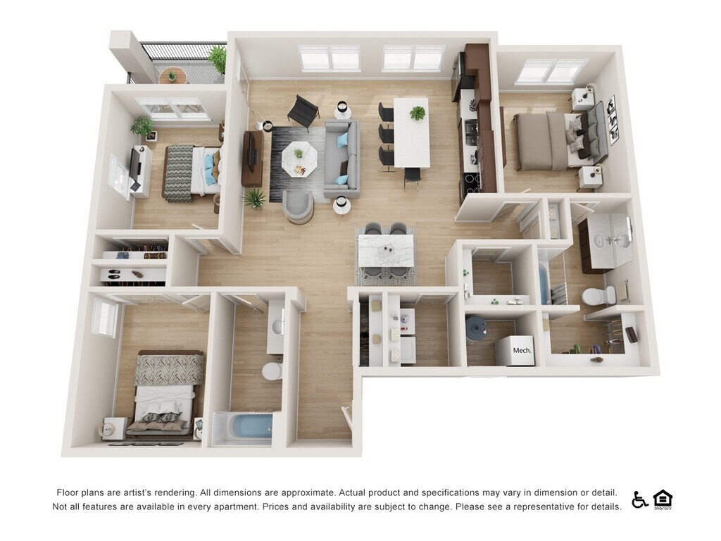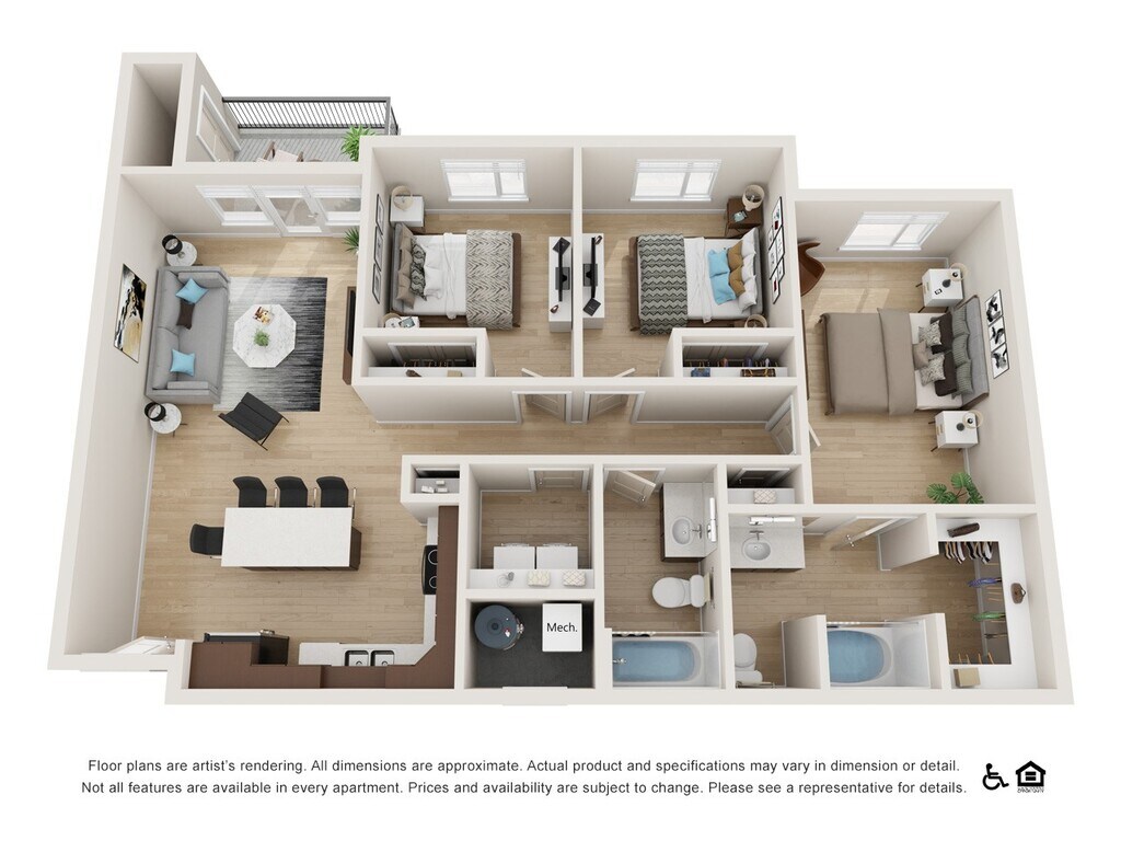 - Spacious One-, Two-, and Three Bedroom Apartments
