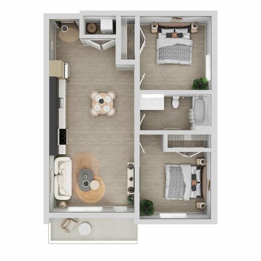 2 Beds, 1 Bath, 692-762 sq ftAvailable January 1, 2026Model Gallery