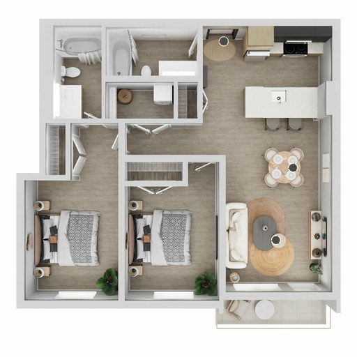 Apartment Model: 2 Bed 2 Bath$2,7002 Bedroom, 2 Bath, 834 sq ftAvailable January 1, 2026![]()