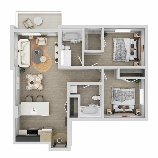2 Beds, 2 Baths, 834 sq ftAvailable January 1, 2026Model Gallery