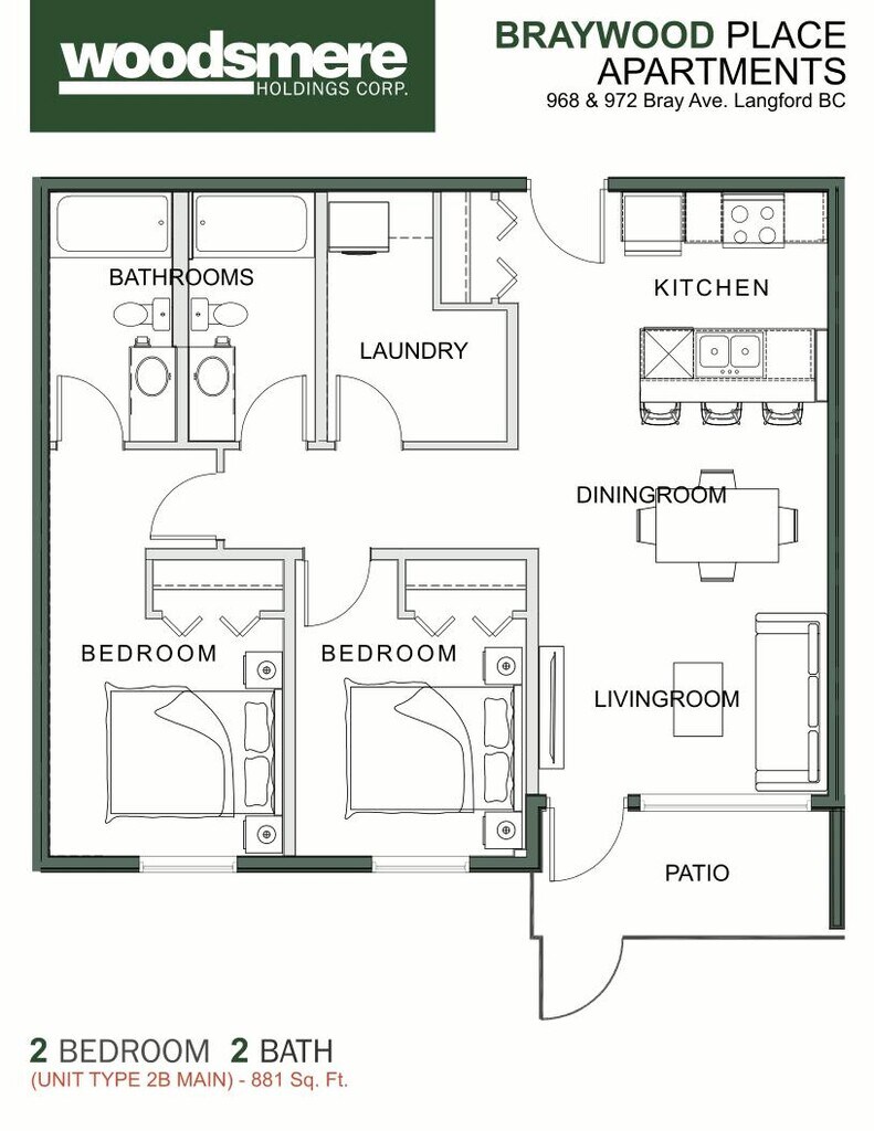 2 Beds, 2 Baths, 881 sq ftModel Gallery