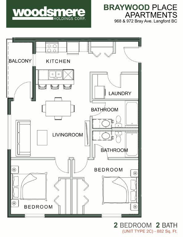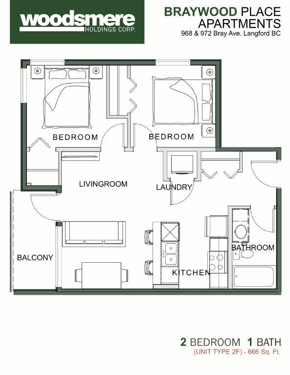 Brand New Buildings, Now Open! Braywood Place Apartments: 2 buildings – 158 stylish modern designed apartments. Braywood Place Apartments is located minutes away from Langford’s downtown centre, Westshore Centre, and Centre City Park. Note; this is a non-smoking property.