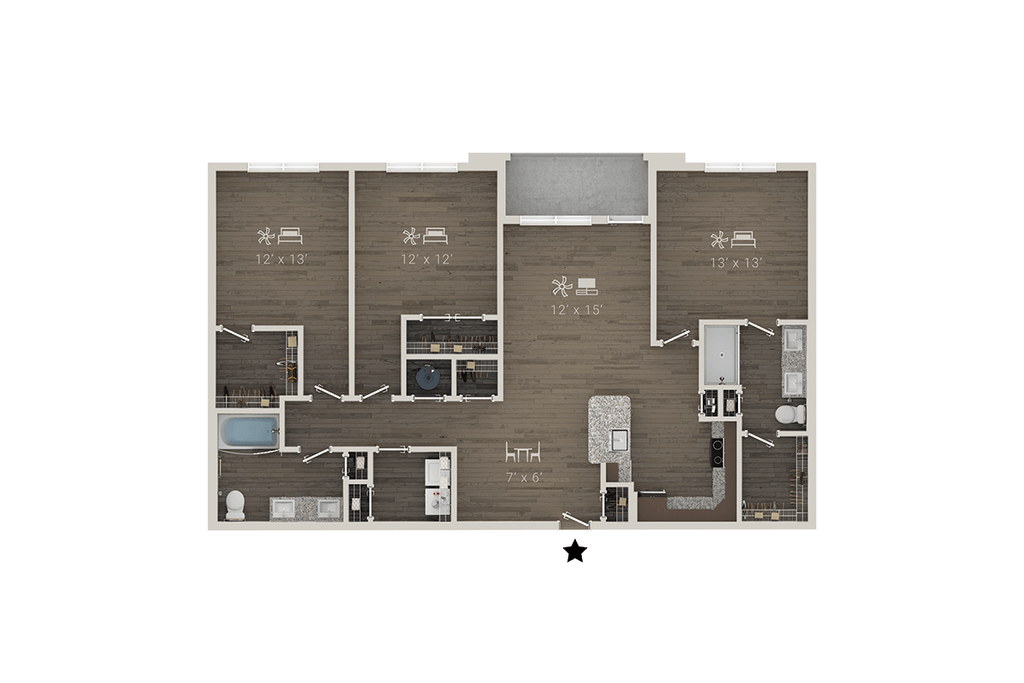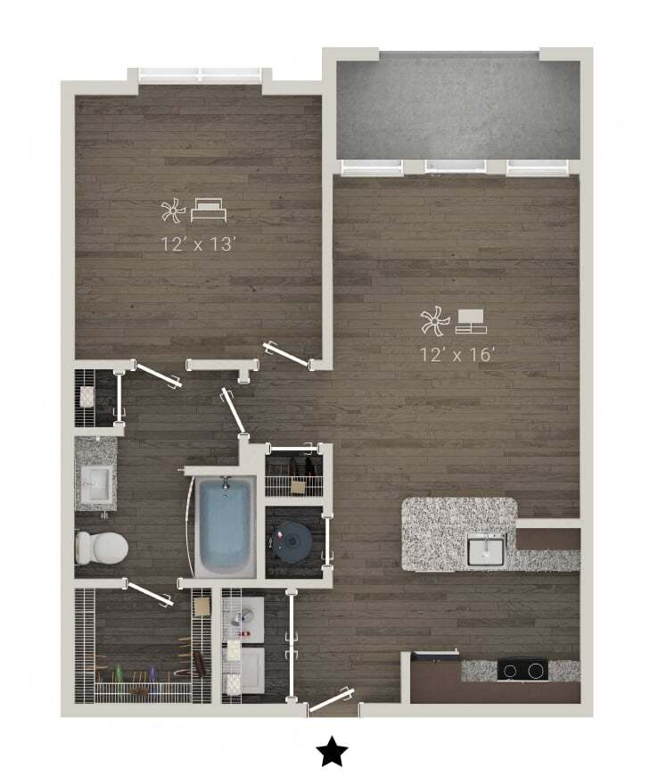 1 Bed, 1 Bath, 726 sq ftAvailable NowModel Gallery