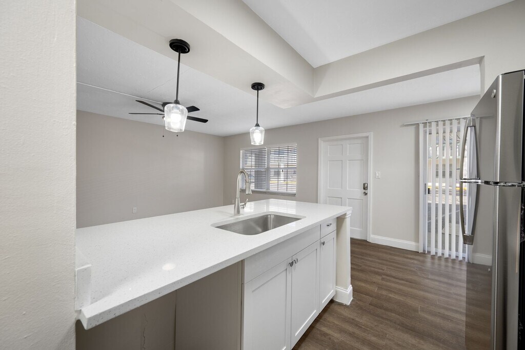 Welcome to Breezy Palms, renovated apartment homes in sunny Largo. We have a rare opening for a spacious 2 bedroom, 1 bathroom apartment. Inside, you'll find a fully renovated kitchen & bathroom, updated hard flooring, and spacious layout. Outside you'll enjoy a front patio, private parking, convenient on-site laundry, and a shaded neighborhood great for evening walks. Enjoy a 15 minute bike ride to Belleair Beach, walk to restaurants & shops on Bay Drive, and enjoy all that Largo has to offer! [Photos have been virtually staged. Close to Belleair, Clearwater, Indian Shores, Indian Rocks Beach, Dunedin, Seminole, Bardmoor, Redington Beach, Ulmerton Road, Largo Medical Center, I-19]