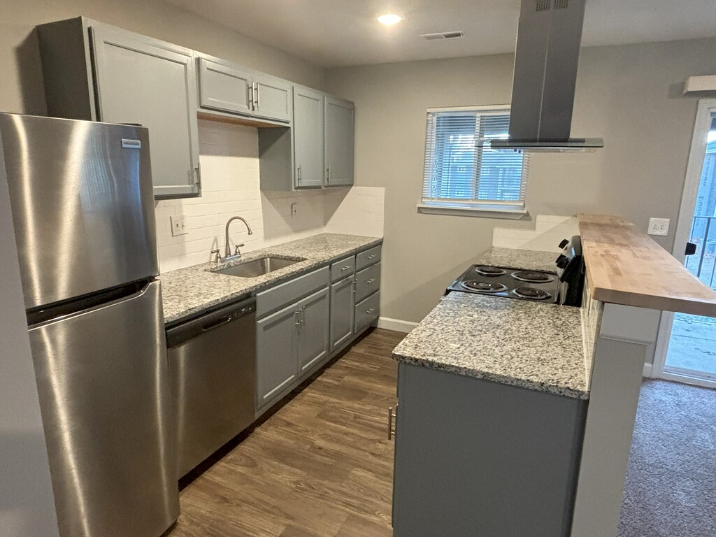 Located at 10316 E. 63rd Street in Raytown, MO. We completed RENOVATIONS in Summer 2021 and are currently LEASING 1-2 bedrooms! All units have new kitchens with stainless steel appliances and granite countertops, updated flooring and carpet, W/D included. Application Fee: $50. Please call for pricing and availability.
