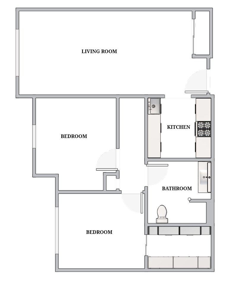 2 Beds, 1 Bath, 728-829 sq ftAvailable NowModel Gallery