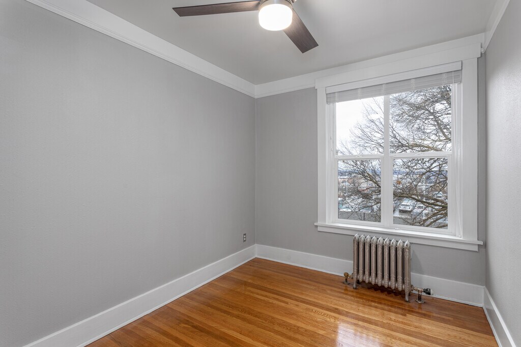 August 3, 2015When we moved in we began renting a one bedroom apartment, which had a spacious bedroom, tiny bathroom, plenty of closet space, a decent kitchen with no dinning area and a good size living room. Then, we moved across the hall to a two bedroom. It has a large dinning area, small bathroom with even less storage than our last apartment. It also has a small kitchen with a sizable amount of cupboard space to make up for the lack of counter space, both bedrooms are a good size but lack storage space, ...and a decently shaded view of the back yard. My only real qualms are with the management, which seems to be very busy and has yet to finish my repair requests, after a month of waiting. I have been placated with small fixes in an inconsistent manner and am about ready to do the repairs myself. On the plus side, water, sewer, garbage, and heating are included. Steam heat throughout the building so in the winter I'm never without heat, unless the boiler breaks down; which also makes showers a bit difficult since the water gets turned off throughout the building for maintenance. But, we get on site laundry so I don't have to pack up my clothes and haul them down the street. All in all its nice in its own way!Property Manager Responded