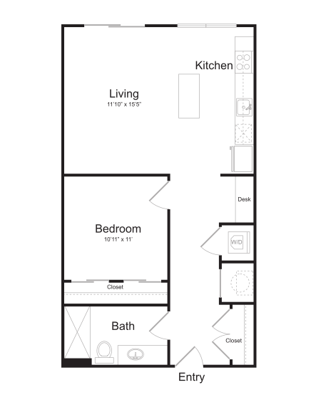 Apartment Model: S11$1,759Studio, 1 Bath, 562 sq ftAvailable NowFloor plans are artist's rendering. All dimensions are approximate. Actual product and specifications may vary in dimension or detail. Not all features are available in every rental home. Prices and availability are subject to change. Base rent is based on monthly frequency. Additional fees may apply, such as but not limited to package delivery, trash, water, amenities, etc. Deposits vary. Please see a representative for details.
