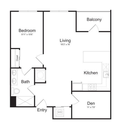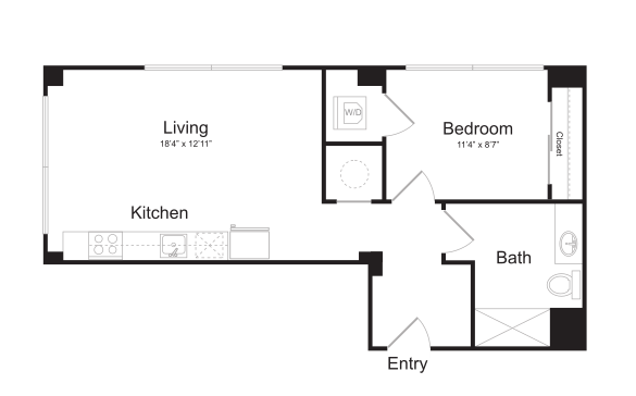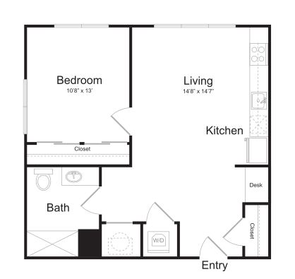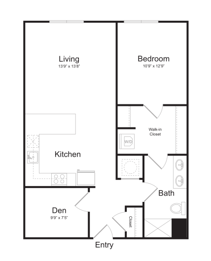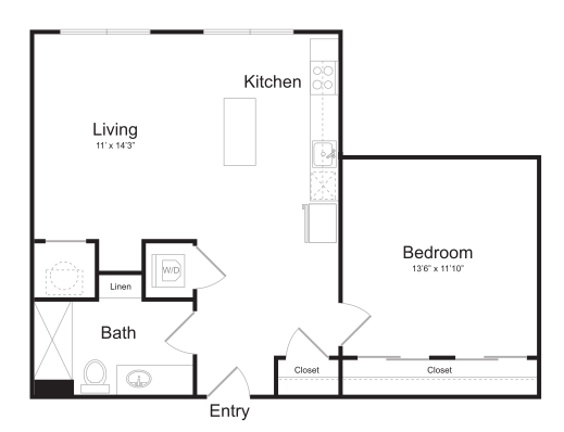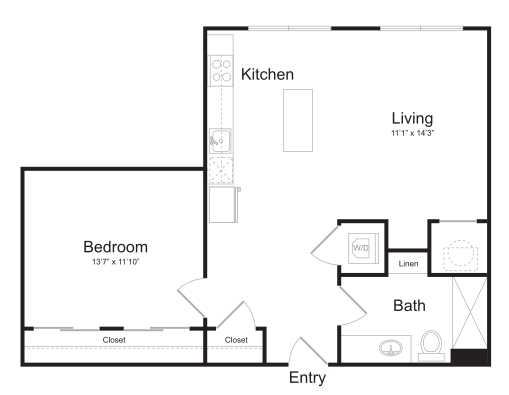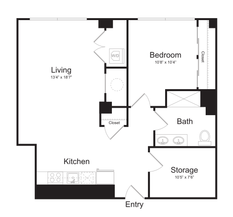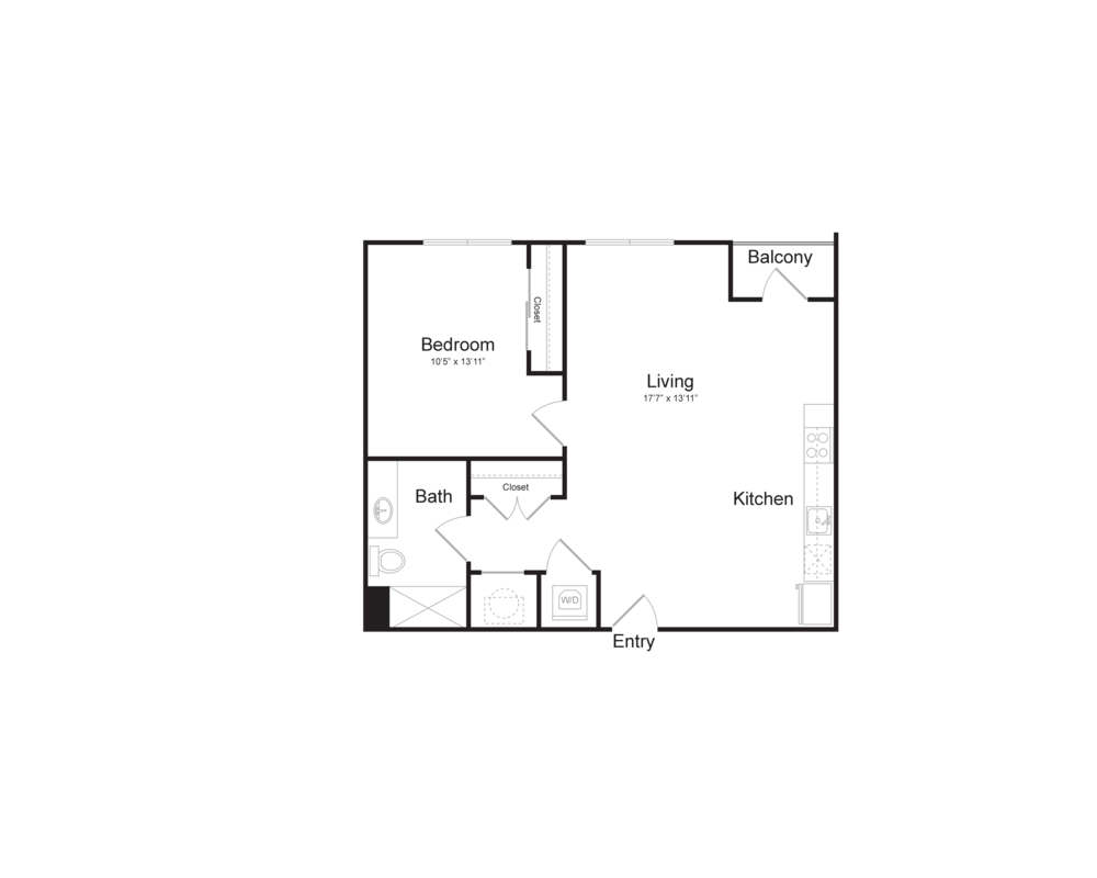 S11 - Floorplan 1 Apartment Unit: 1-103Apartment Model: S11$1,759Studio, 1 Bath, 562 sq ftAvailable NowFloorplan S13