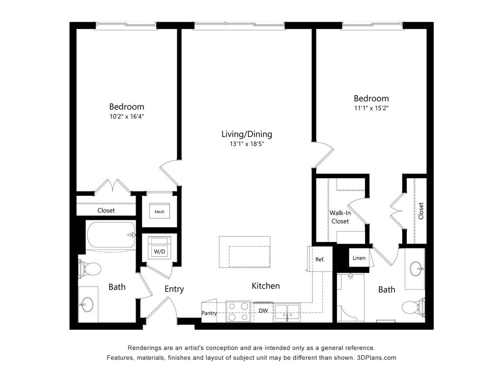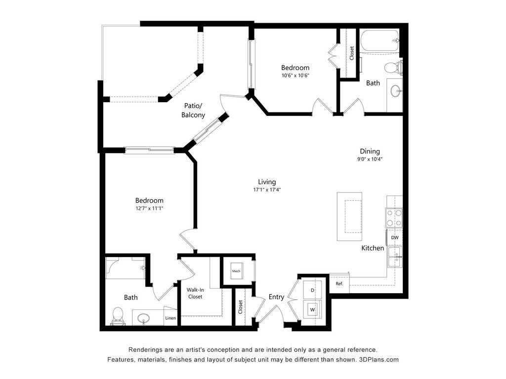 1 Bed, 1 Bath, 638 sq ftModel Gallery