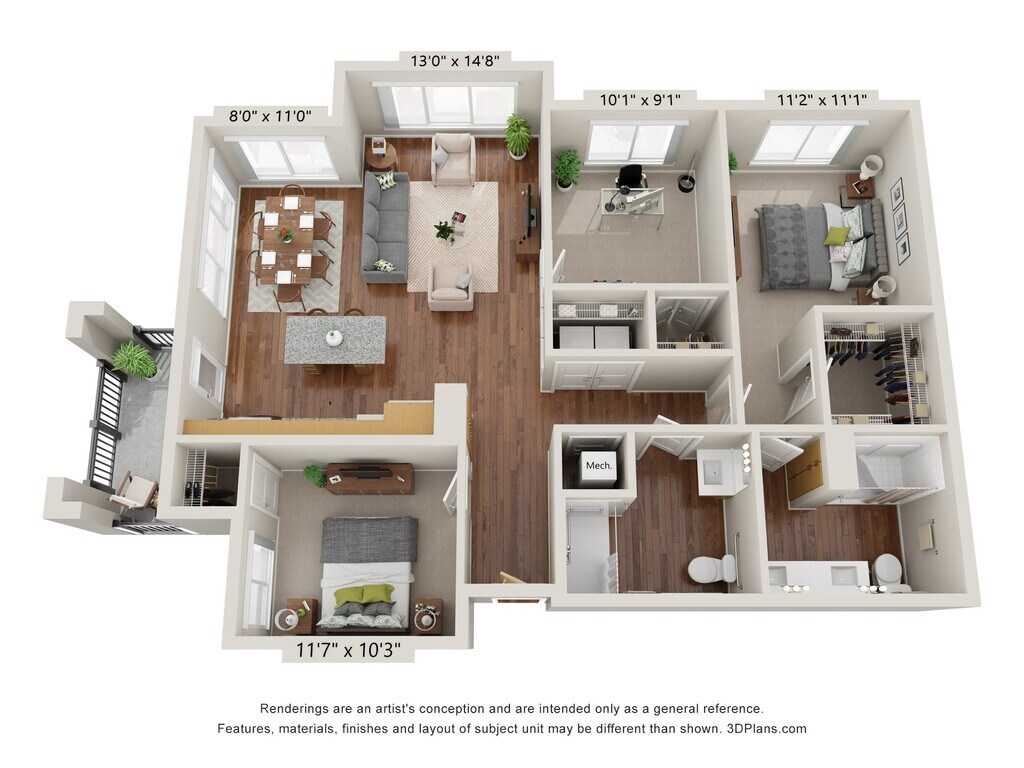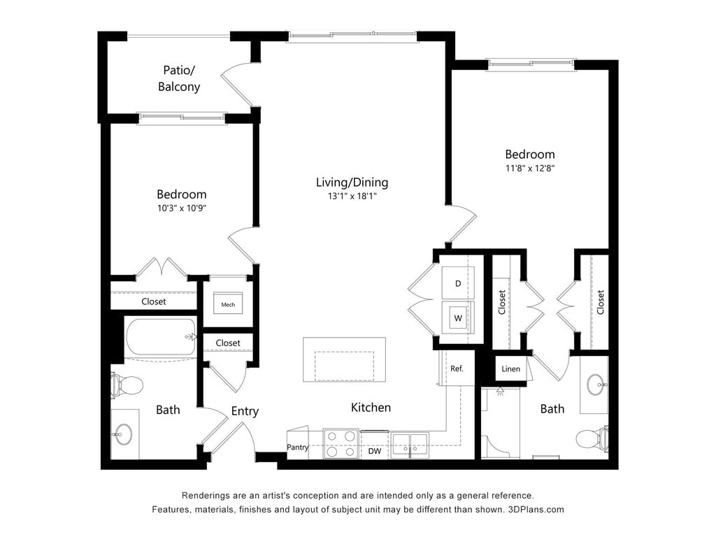 Apartment Model: One Bedroom BFrom $1,1921 Bedroom, 1 Bath, 732 sq ftAvailable Now![]()