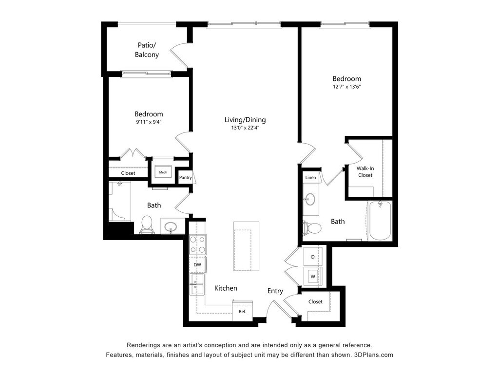 One Bedroom A - Floorplan 2 Apartment Unit: D509Apartment Model: One Bedroom A$1,1921 Bedroom, 1 Bath, 686 sq ftAvailable December 1, 2025One Bedroom D