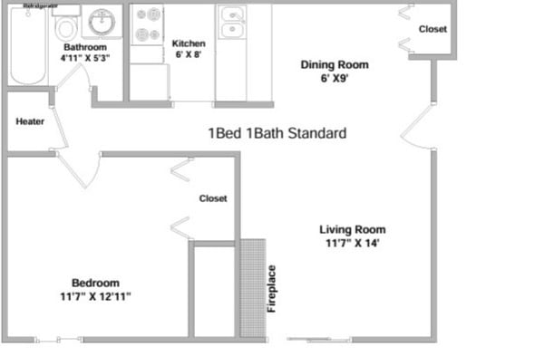 Apartment Model: 2 Bed 1 1/4$8752 Bedroom, 1 Bath, 850 sq ftAvailable Now![]()