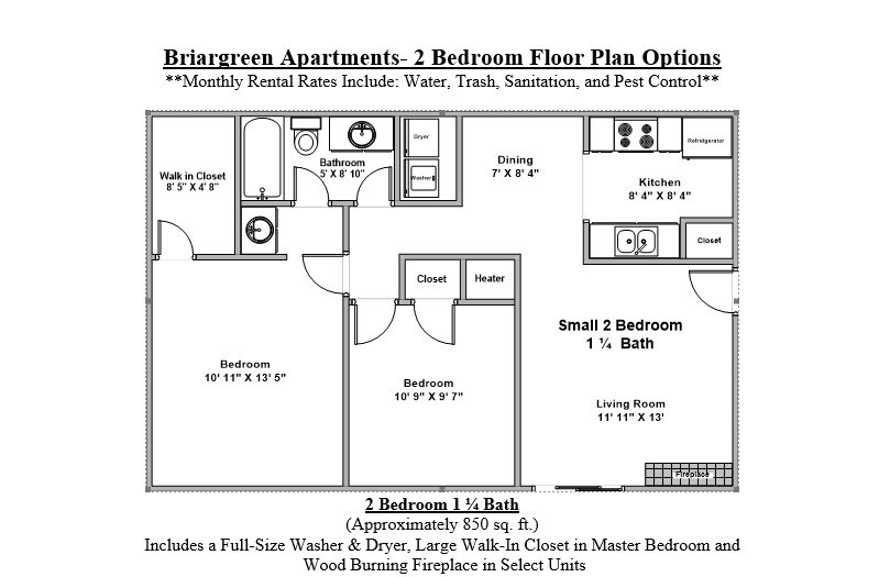 2 Bed 1 1/2 Bath - Floorplan 1 2 Bed 2 Bath