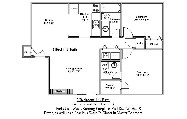 Apartment Model: 2 Bed 1 1/2 Bath$8952 Bedroom, 1.5 Bath, 900 sq ftAvailable October 31, 2025![]()