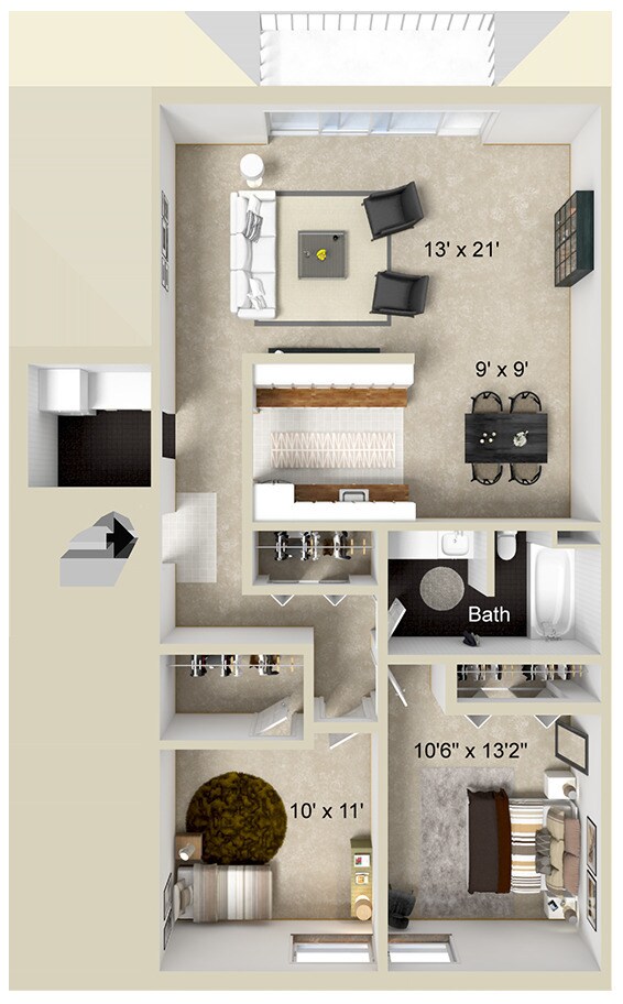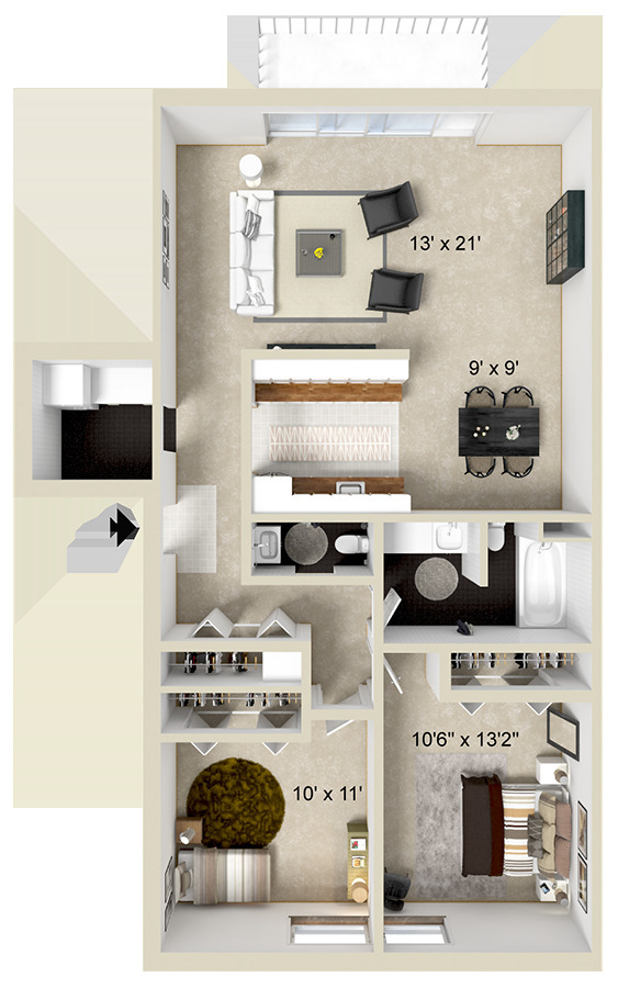 2 Beds, 1 Bath, 1032 sq ftAvailable NowModel Gallery