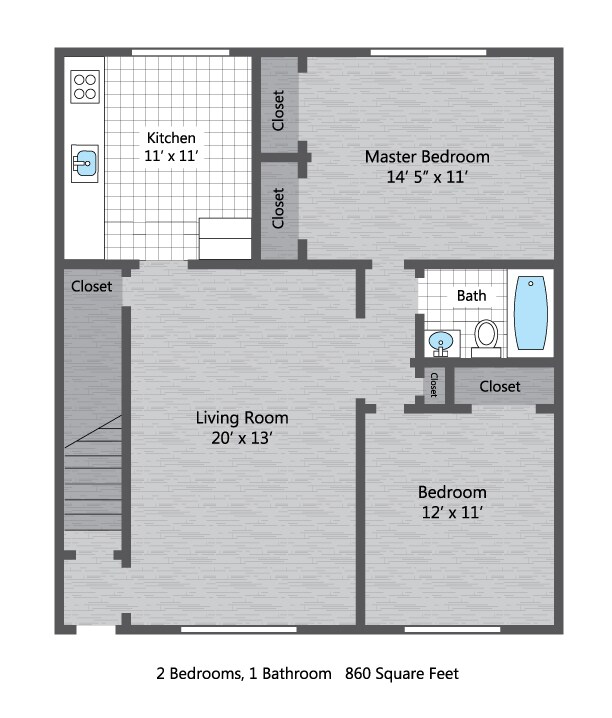 2 Beds, 1 Bath, 625-860 sq ftModel Gallery