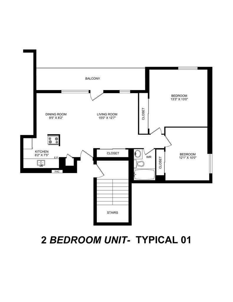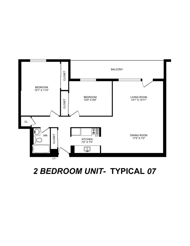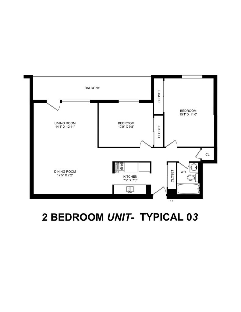 1 Bedroom - Floorplan 3 2 Bedrooms
